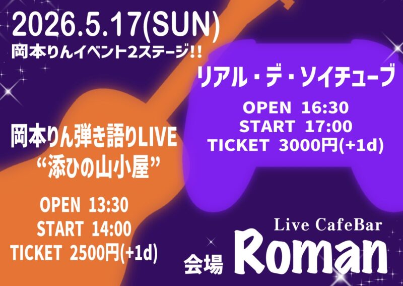 日時: 【昼の部】開場14:00 開演 14:30 /【夜の部】開場18:00 開演 18:30